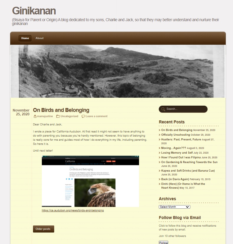 With the above in mind, I maintain a blog of letters for my son so that they may know about their ginikanan (their parents/origins/ancestral roots).